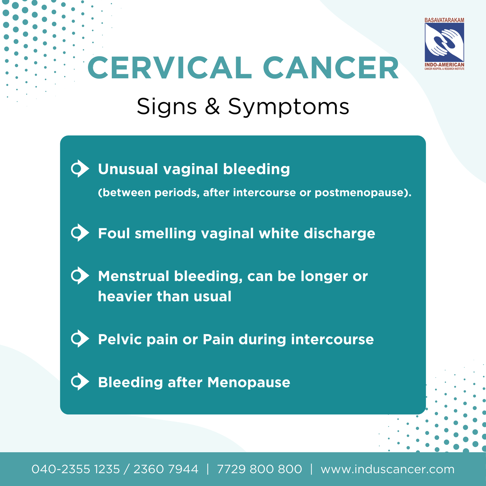 Basavatarakam Indo American Cancer Hospital is dedicated to providing top-notch care, advanced treatments, and comprehensive support to patients. With our experienced team and state-of-the-art facilities, we are committed to the fight against cervical cancer and ensuring the best outcomes for our patients.